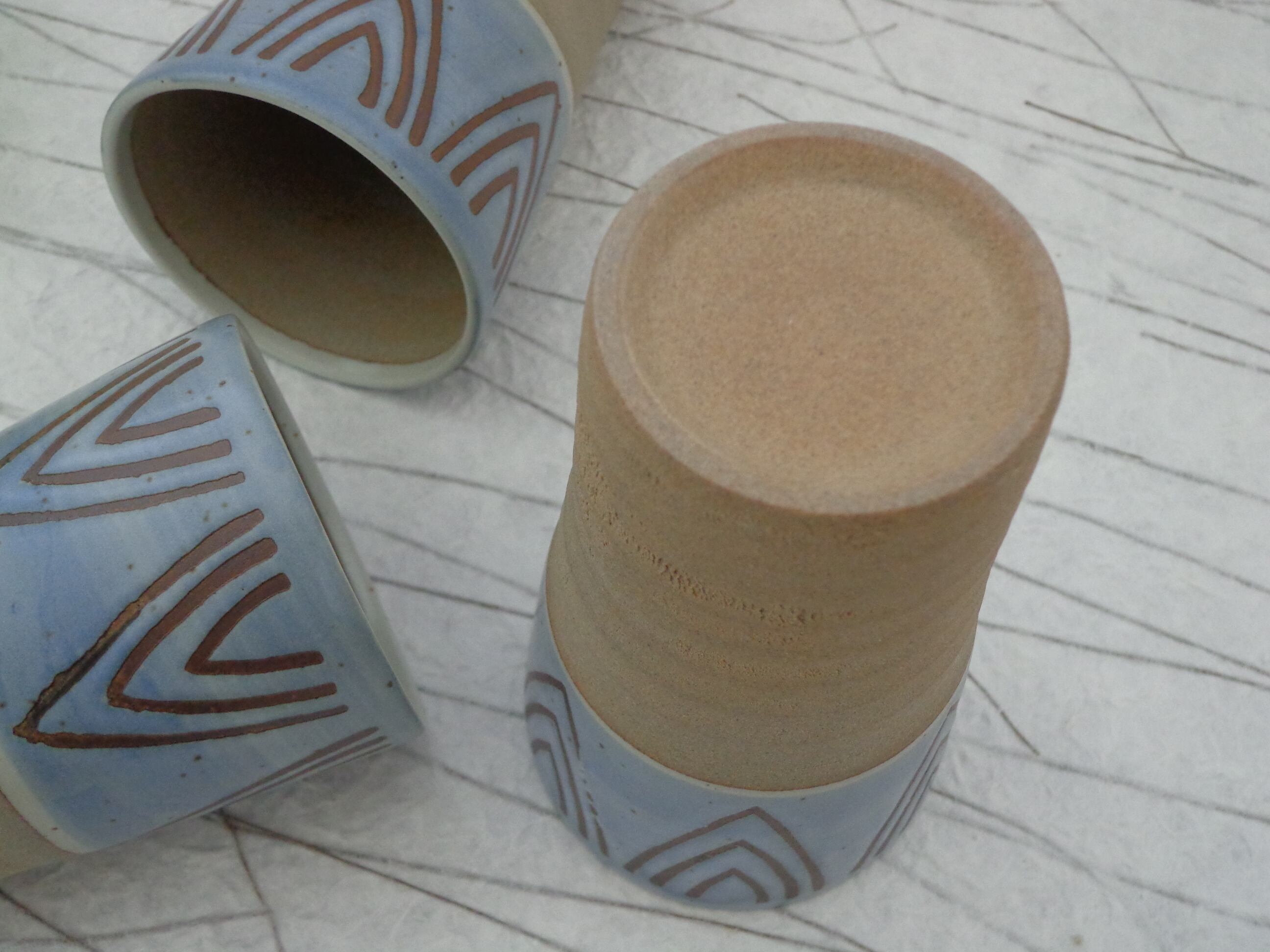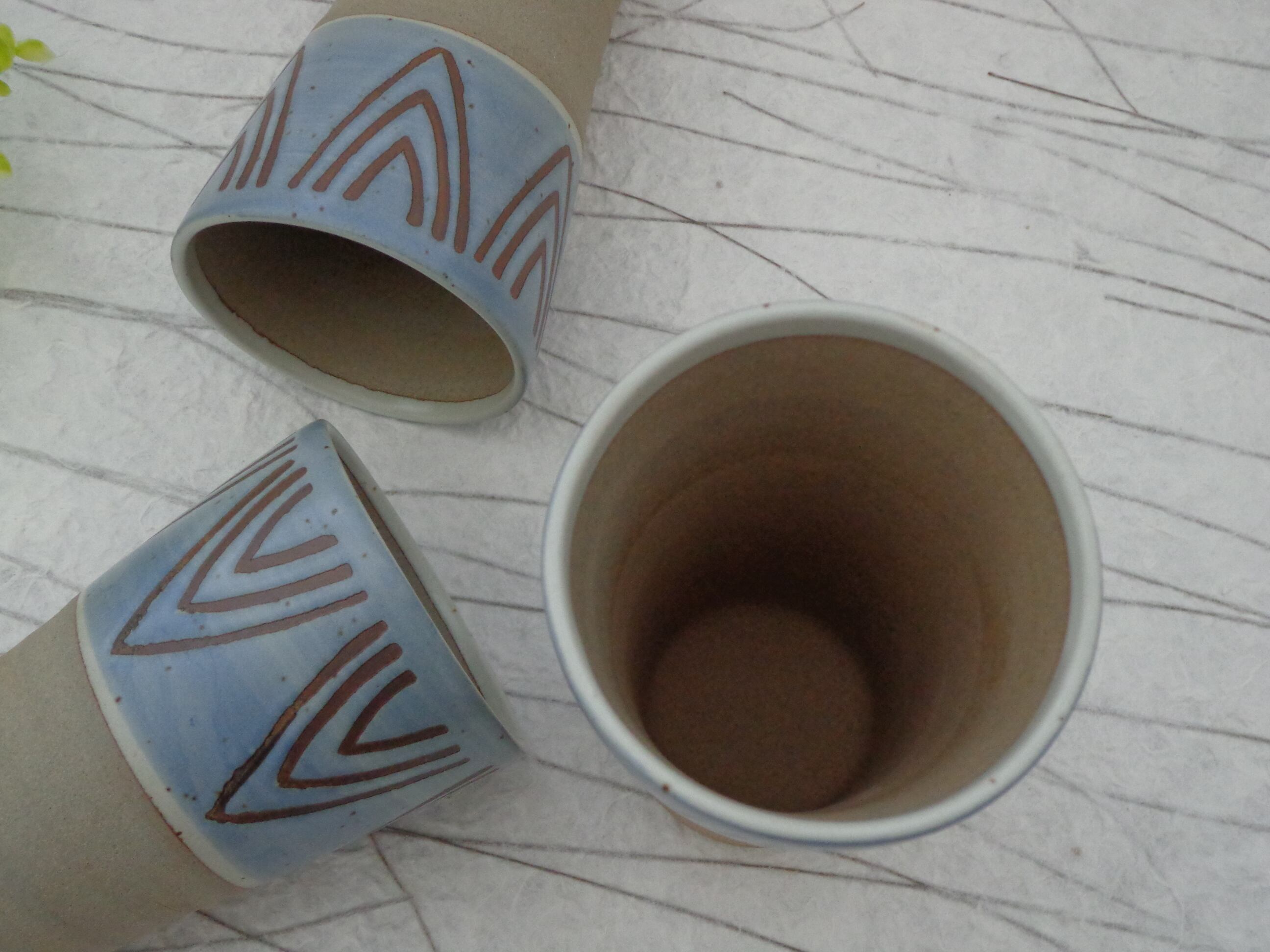 V柄の土物のフリーカップです。
